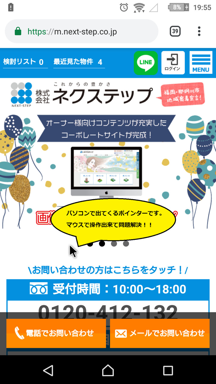 無事!!!ポインターがスマホ画面に出現し、操作できました!!!