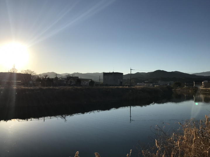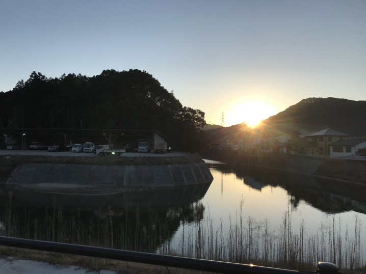 国道385号線沿いを歩いていると朝日が昇っていました。