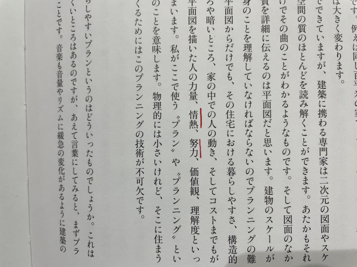 B「ほんと、ここに書いてあるとおりだと思います。僕はこの中で特にこの2つ(「情熱」・「努力」)が大事だと思います。」