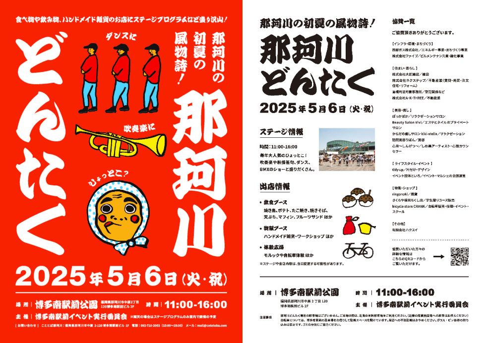 GW最終日に、博多南駅前公園で開催される「那珂川どんたく」。株式会社ネクステップもイベントを盛り上げるべく、出展ブースを出します。お子様やご家族で楽しめる催しをご用意していますので、ぜひ気軽にお越しください!
